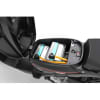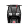 The top of the Super Soco range is the CPx. A 4kw, two-seater capable of carrying up to 200KG up to 56mph and up to 80 miles of range It comes with two 60v 45ah removable lithium-ion batteries with a range of just over 40 miles each battery and each can be charged in 3.5 hours. The bike can be ridden on one battery and still achieve 56mph. Without the second installed, there is some storage space under the seat which highlights how much bigger this bike is in comparison to the CUx at just over 2m long. Interestingly although not entirely uniquely, the front wheel is 16" whereas the rear is 14" but both have disc brakes. Super Soco also highlight how easy it is to remove the rear wheel where the hub motor is as this category of bikes often have to have the power lead detached to change a tyre for example. It is capable of taking 200KG of load and comes with a rear rack and front tall screen as standard features.